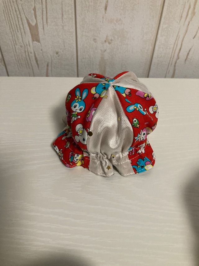 ちびぬいの帽子のみ(ハニーチューン赤) 注文があってから作成ではなく 写真のちびぬいの帽子を発送いたします ハニーチューンの赤い生地とベージュのサテン生地にチュール生地を合わせた生地で作りました チュール生地はとても繊細なのでお取り扱いにご注意ください そして星などの装飾品が取れる場合があるかと思いますがご了承願います 帽子にはゴムを入れたのでちびぬいの頭にフィットしやすいかと思います ※ちびぬい本体と洋服はついてきません 帽子1枚のみです 今回の帽子は 私が持っているちびぬいの中で 1番頭の大きい初心LOVEバージョンの大橋和也くんに合わせて作りました ちびぬいに個体差があり 緩いとかきついなどの誤差が出る場合があります 返品交換は出来ませんので 少しでも気になる方はご購入をお控えください ミシンと手縫いと布用ボンドとほつれ止めで作りました ハンドメイド品なのでまっすぐ縫えていなかったり左右非対称や糸が出たり補正の甘さなどあるかと思います 丁寧に丈夫に作りましたが お店にある様な完璧なちびぬい服をお求めの方は ご購入をお控えください そして手縫いやマジックテープや布用ボンドなど 万が一取れてしまった場合ご自身で補強をお願いいたします 着用時にちびぬい服を強く引っ張ると破れたりほつれの原因になりますので優しく扱ってください(洗濯は不可です) また長時間着用しているとまれに色移りする場合がございますご注意ください 写真の光の反射などでお手元に届いた時に ちびぬい服の色が多少違う場合がございますがご了承願います 初心LOVEバージョンの西畑大吾くんのちびぬいに試着させた写真です ちびぬいの帽子のみ(ハニーチューン赤) No.66