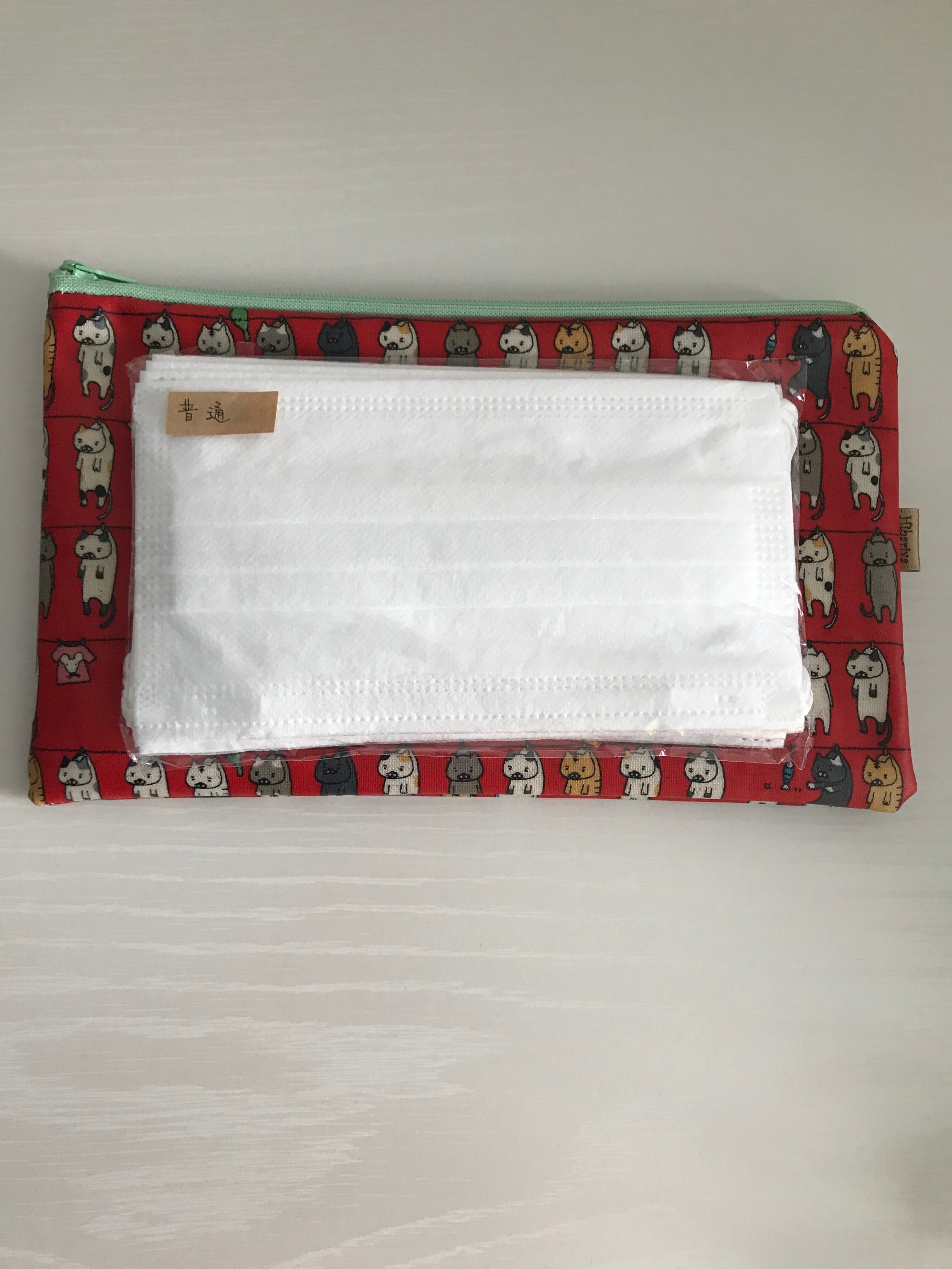 小さめサイズのマスク(縦9.5cm横14.5cm)10枚が袋に入った物を一緒に入れても大丈夫なサイズです。