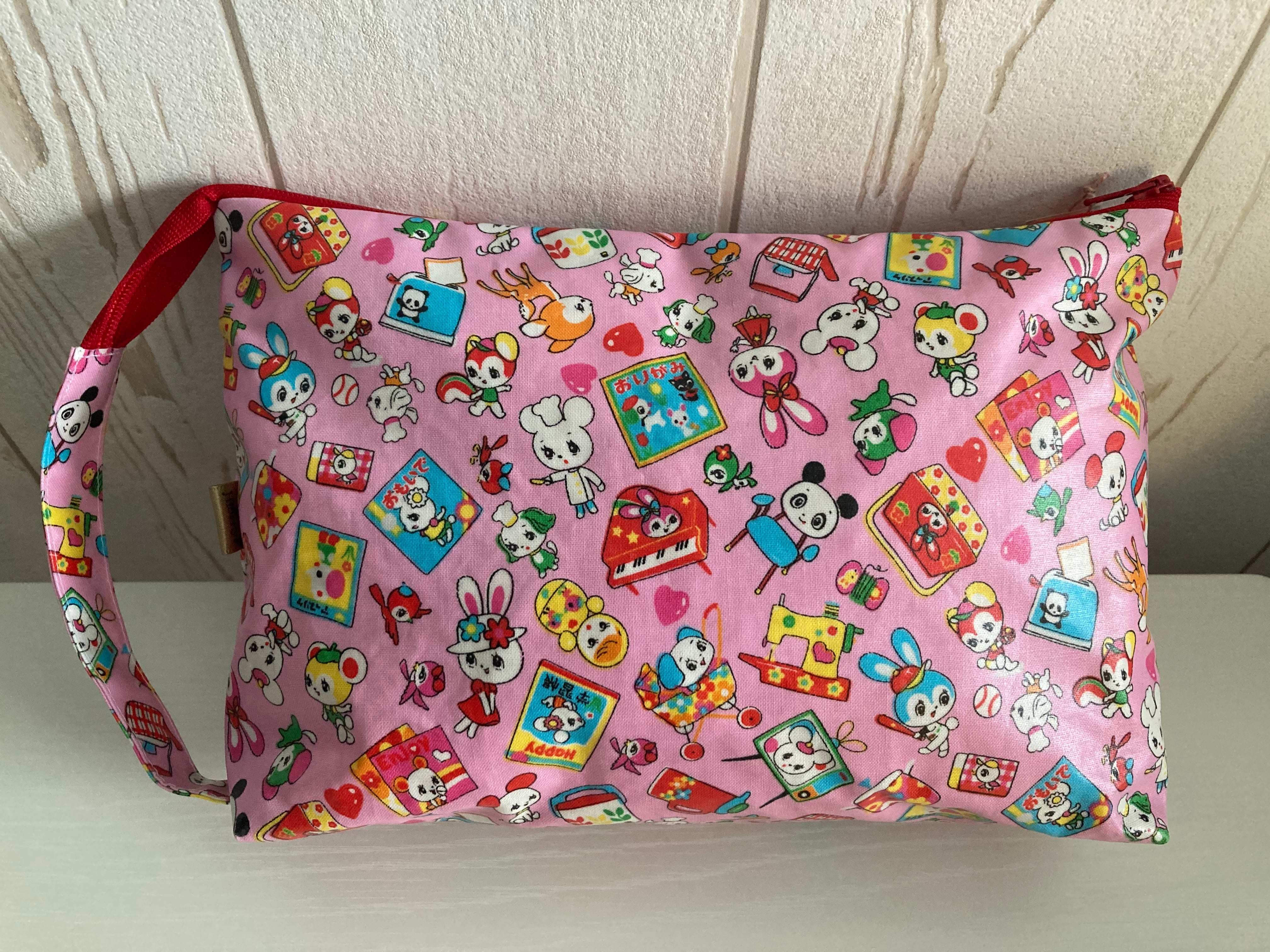 大きめサイズ持ち手付きポーチ チューリップピンク